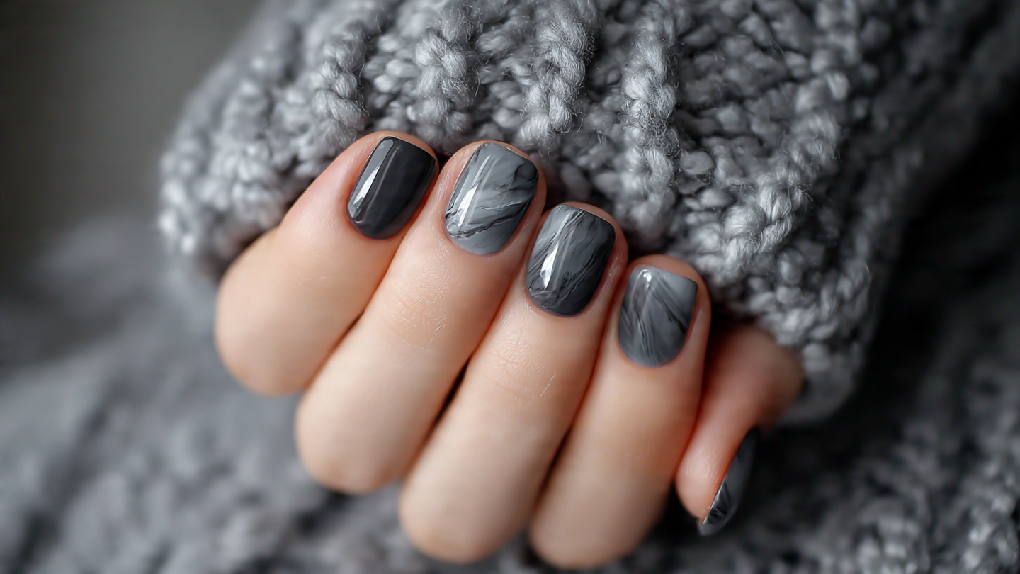 Gray pairs well with neutral winter wardrobes and minimalist outfits. It adds subtle interest while staying understated. This keeps the manicure stylish and refined.