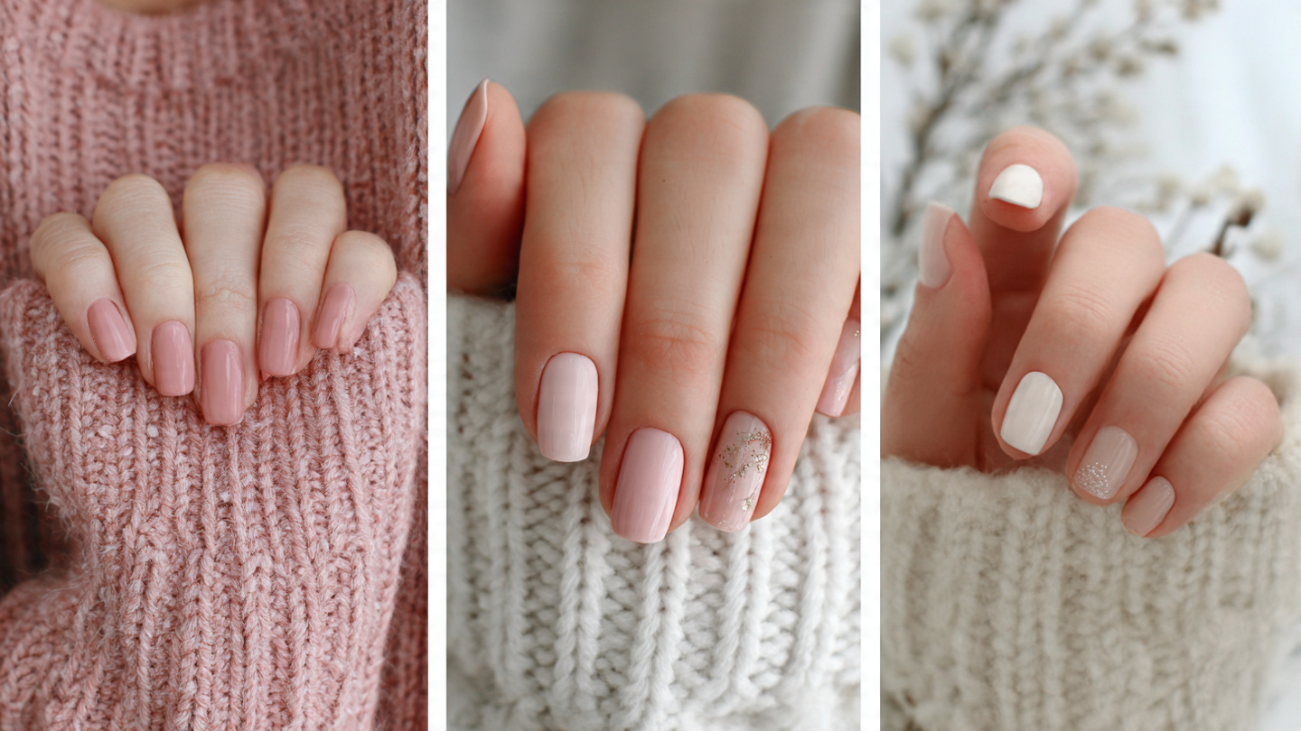 5. Short Nude Winter Nails with Subtle Cozy Feel